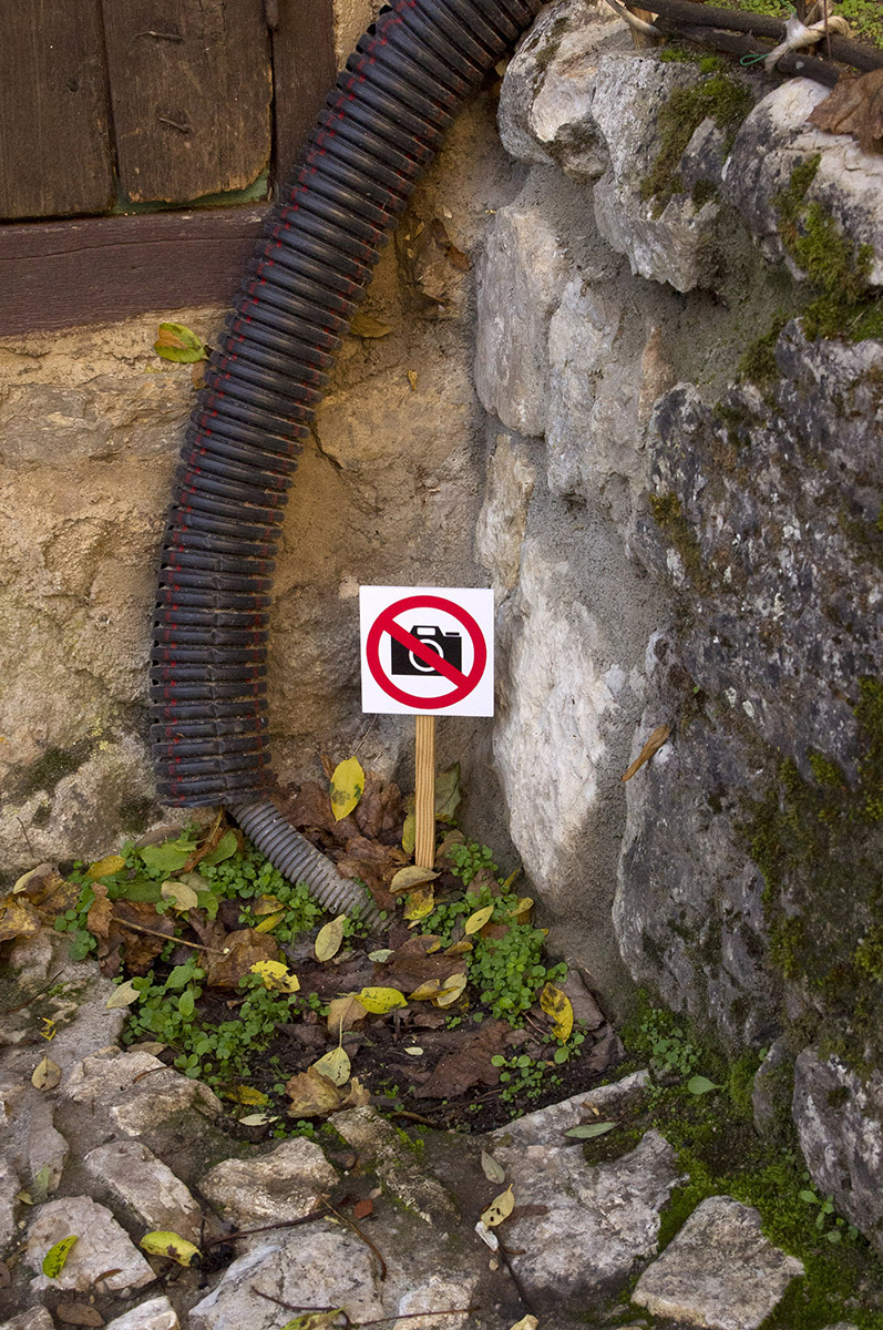 Et c’est là tout l’intérêt. Remettre en perspective le désir affiché par les pouvoirs publics d’une “mise sous cloche” du bourg, visant à monétiser la patrimonialisation du lieux, avec l’impossibilité de pouvoir faire complètement disparaître les traces d’une contemporanéité auquel le village n’échappe pas (réseau électrique, téléphonique, évacuation des eaux usées, réseau gaz etc…).