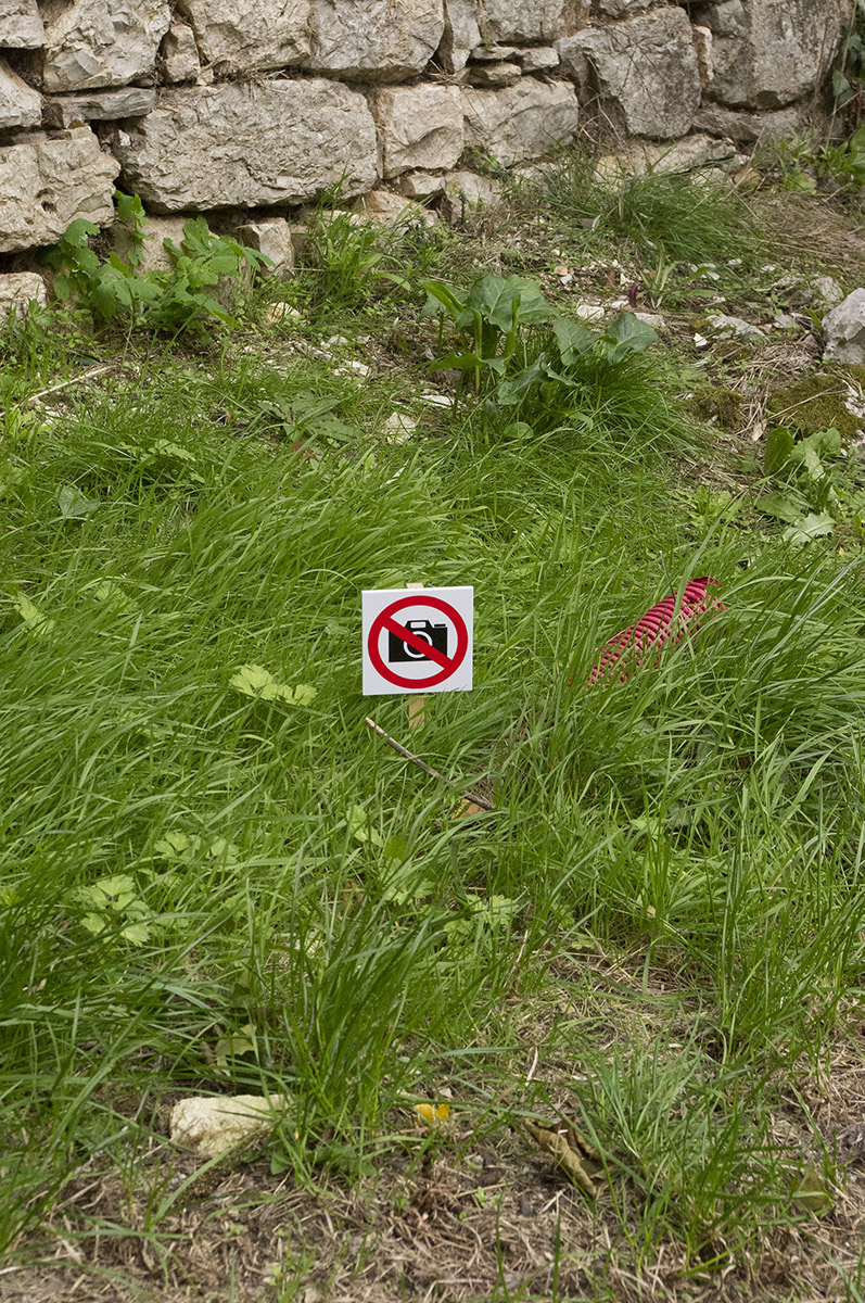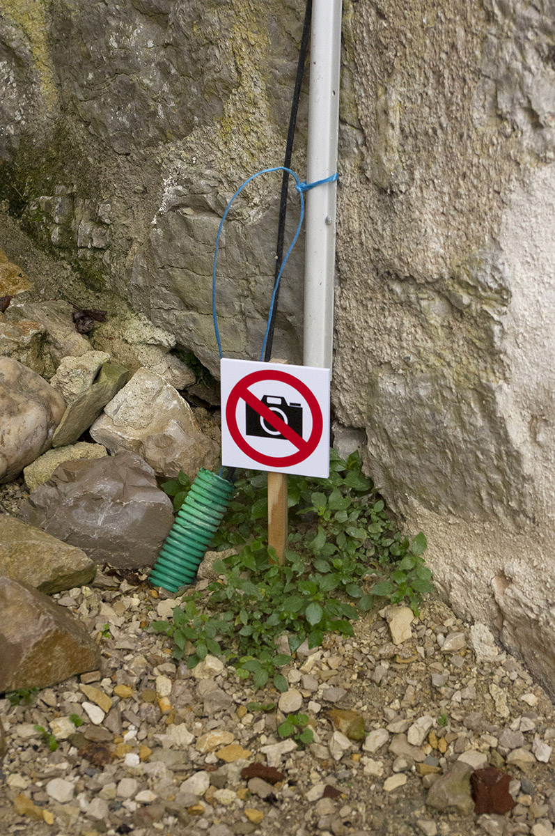 Disposés systématiquement à côté des tuyaux qui surgissent du sol sur quelques centimètres, ces panneaux sont davantage là pour attirer le regard sur ces reliquats que pour tenter de les invisibiliser par l’interdiction d’en conserver la trace.